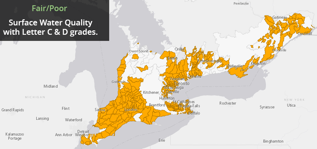 Conservation Authorities have been monitoring water quality and producing watershed report cards since 2012. Many monitoring sites showed average E. coli levels above the recommended guideline. Contact your local Conservation Authority for data in your area.