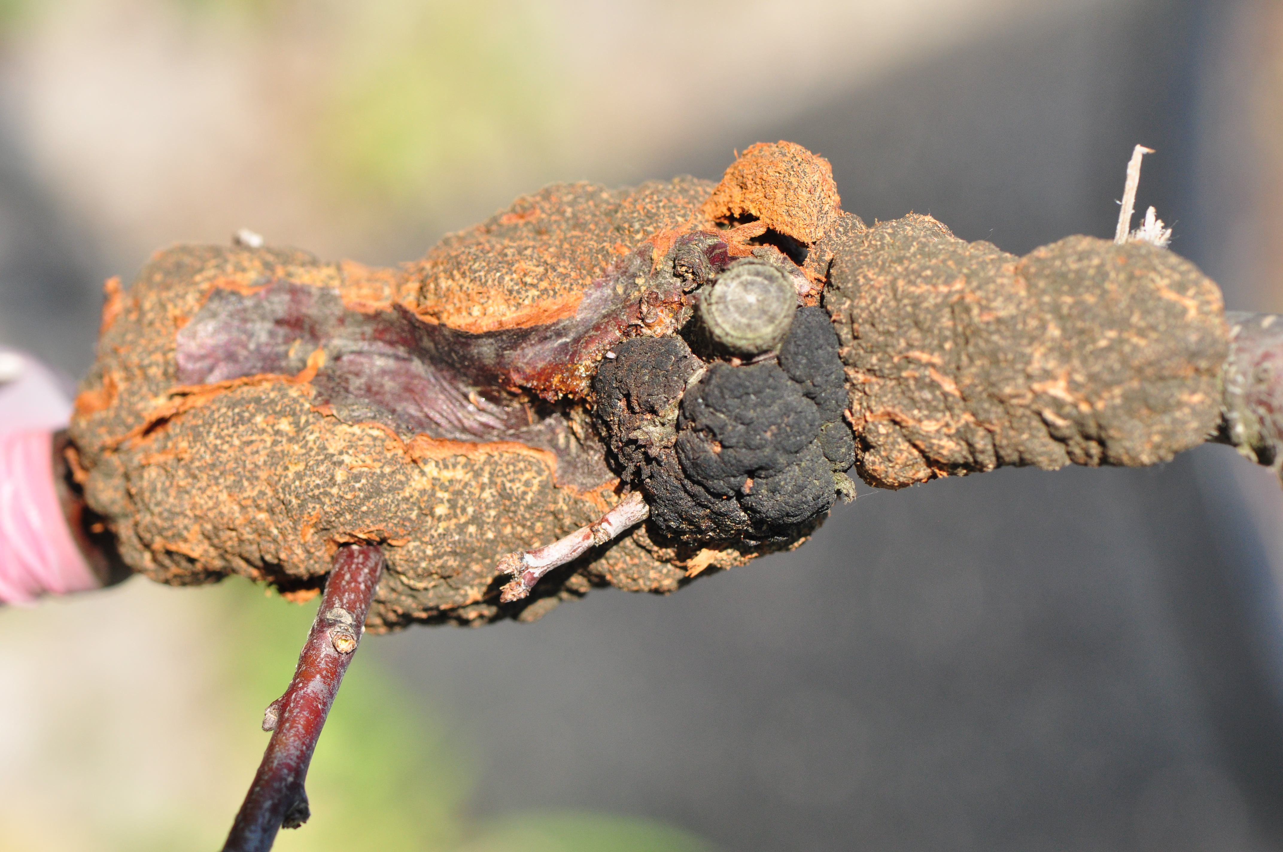 Pruning and destroying knots should be your first line of defence. All knot removal should be completed before the new shoots that develop in late bloom are exposed to infection. The black knot fungus is present in limbs well beyond where knots are visible so prune a minimum of 15 cm below the knot. Knots can release ascospores for up to 4 months after they are removed from the tree. Brush piles should be burned to completely eradicate knots. Flail mowing knots into small pieces will also reduce knot viability and ascospore release.